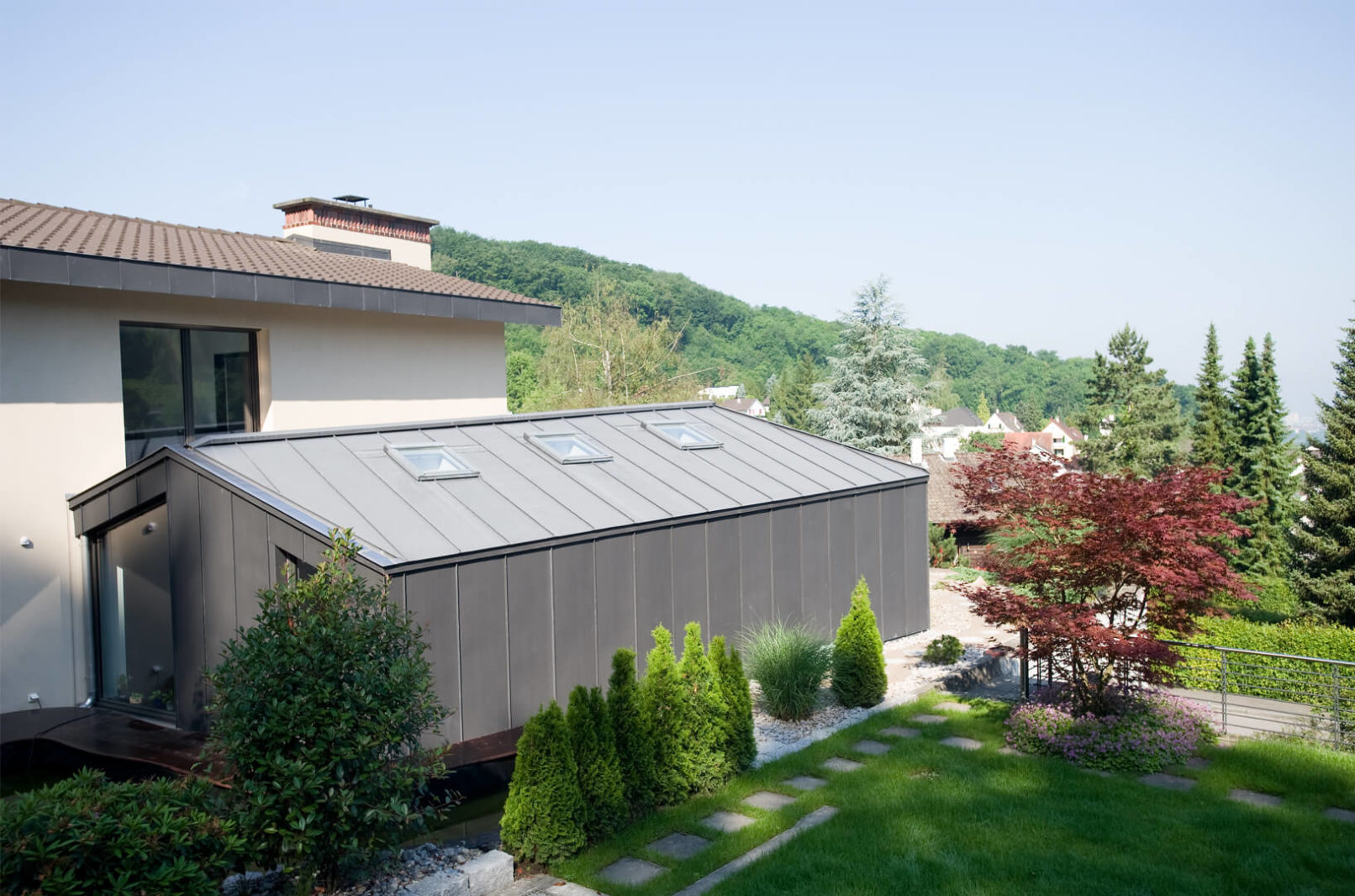 ANBAU EINFAMILIENHAUS| Blechbox mit Durch- und Ausblicke | Bettingen | 2004